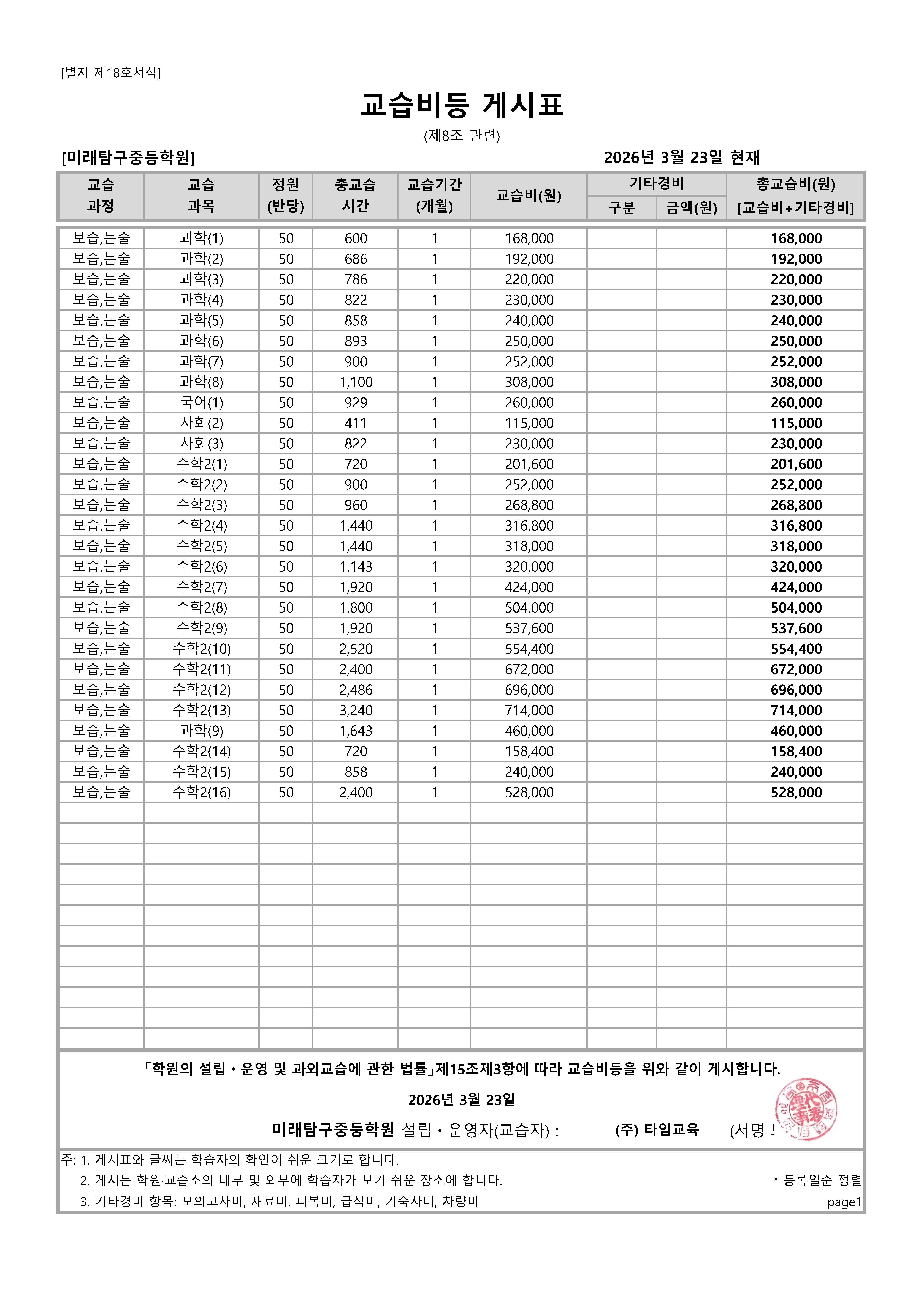 미래탐구 대치 중등센터