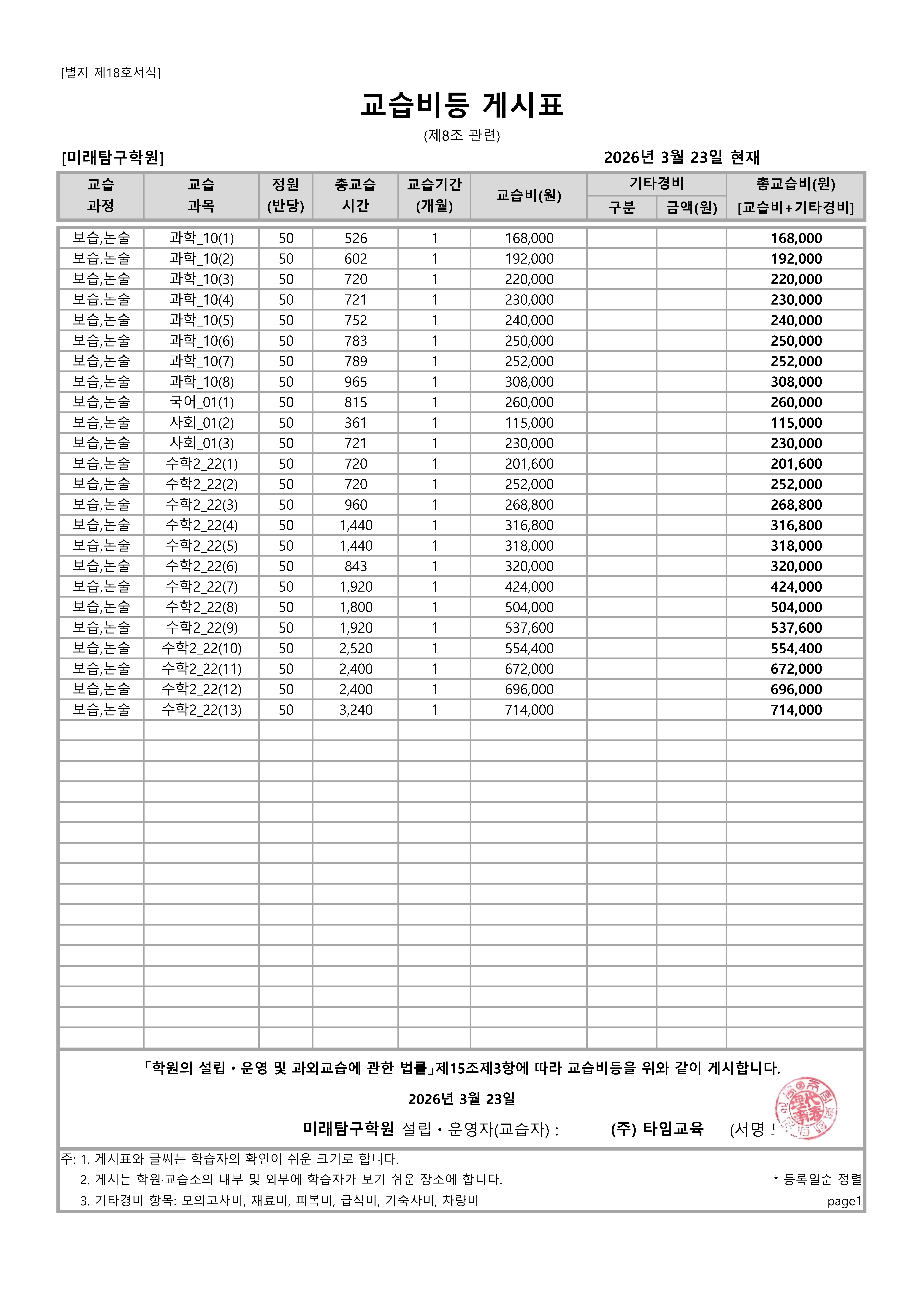 수강료안내